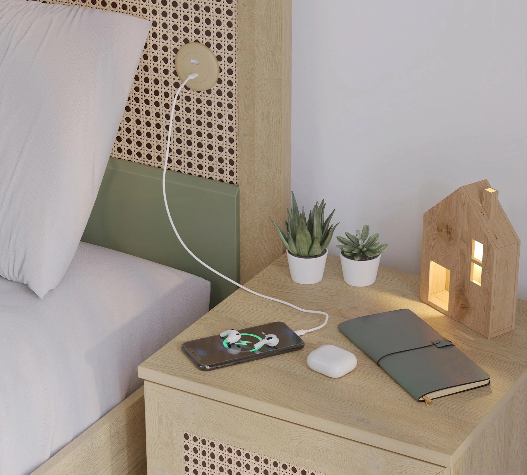 Čelo k posteli LOOF je skvelým doplnkom k posteliam bez čela. Je možné ho kombinovať len s LOOF posteľami bez čela s príslušnou šírkou (120 cm). Čelo má laserovú potlač v podobe prúteného dekoru. Obsahuje USB-C port, ktorý umožňuje nabíjanie smartfónu, tabletu, prípadne napájanie USB lampy.