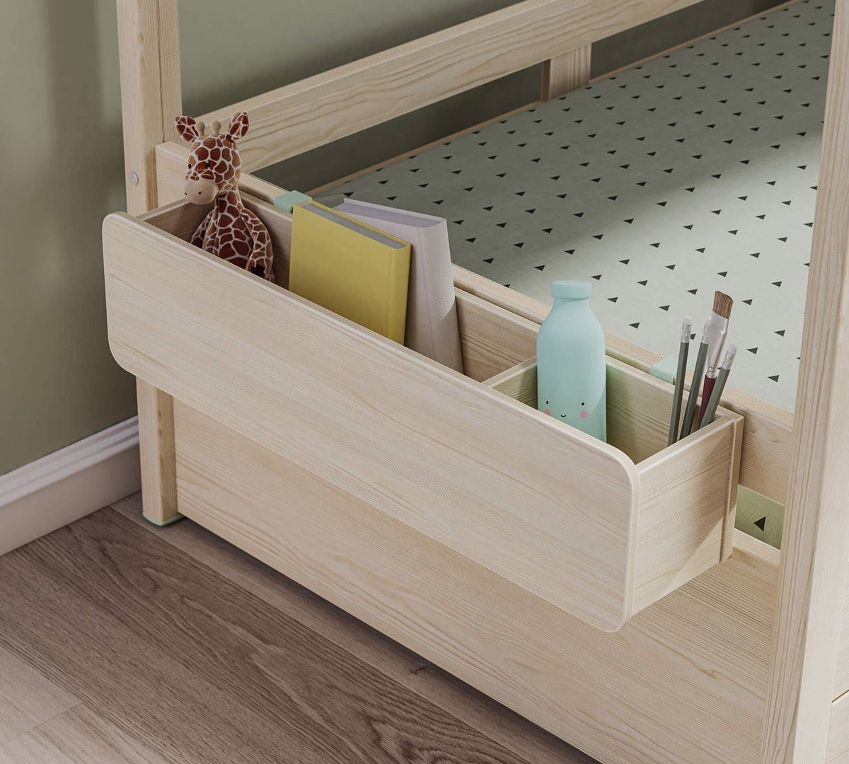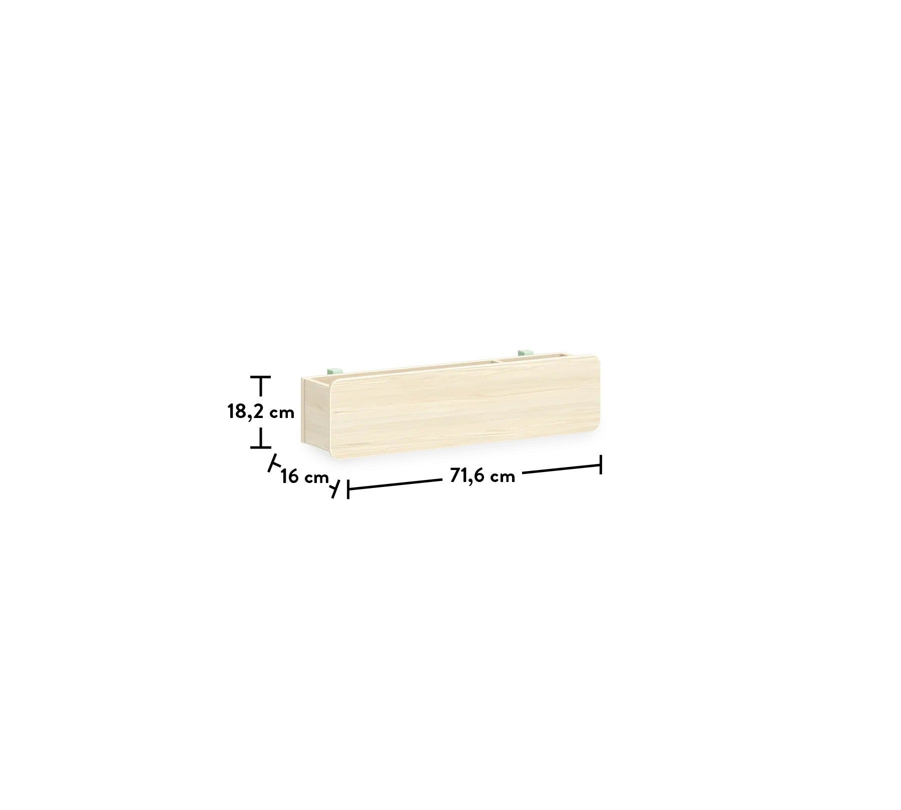Závesný box k posteliam zo série MONTES (domček 1, domček 2, domček 3) je ideálnym doplnkom do detskej izby. Poskytuje dieťaťu priestor na usporiadanie a ukladanie svojich osobných vecí, ako sú hračky, knihy a ďalšie drobnosti. Zaoblený tvar boxu prispieva k bezpečnému zaobchádzaniu. Funguje na základe filozofie Montessori - vytvára deťom priestor organizovať si svoje vlastné veci.