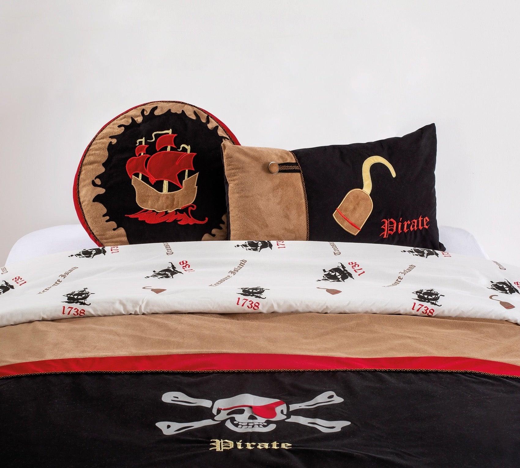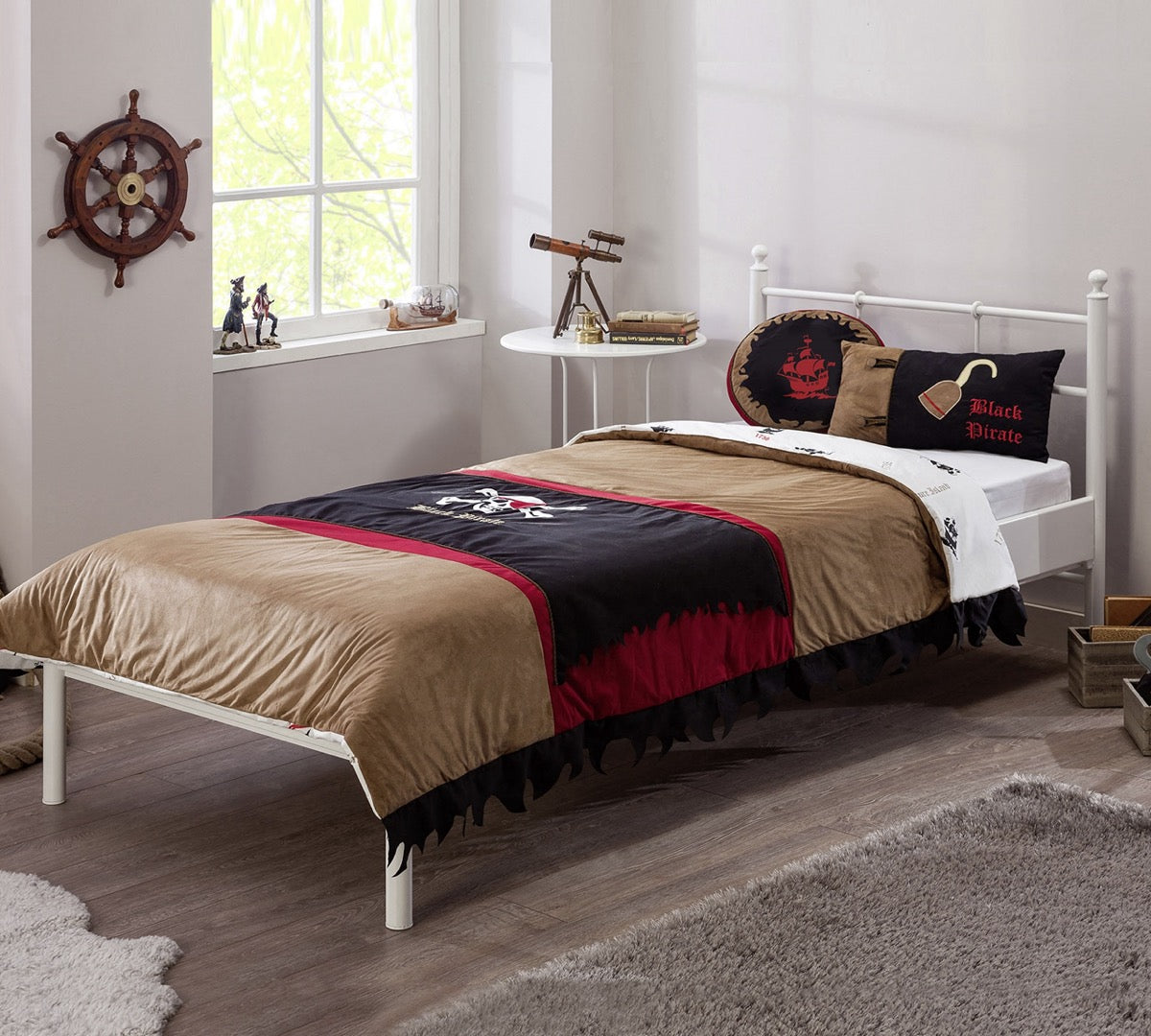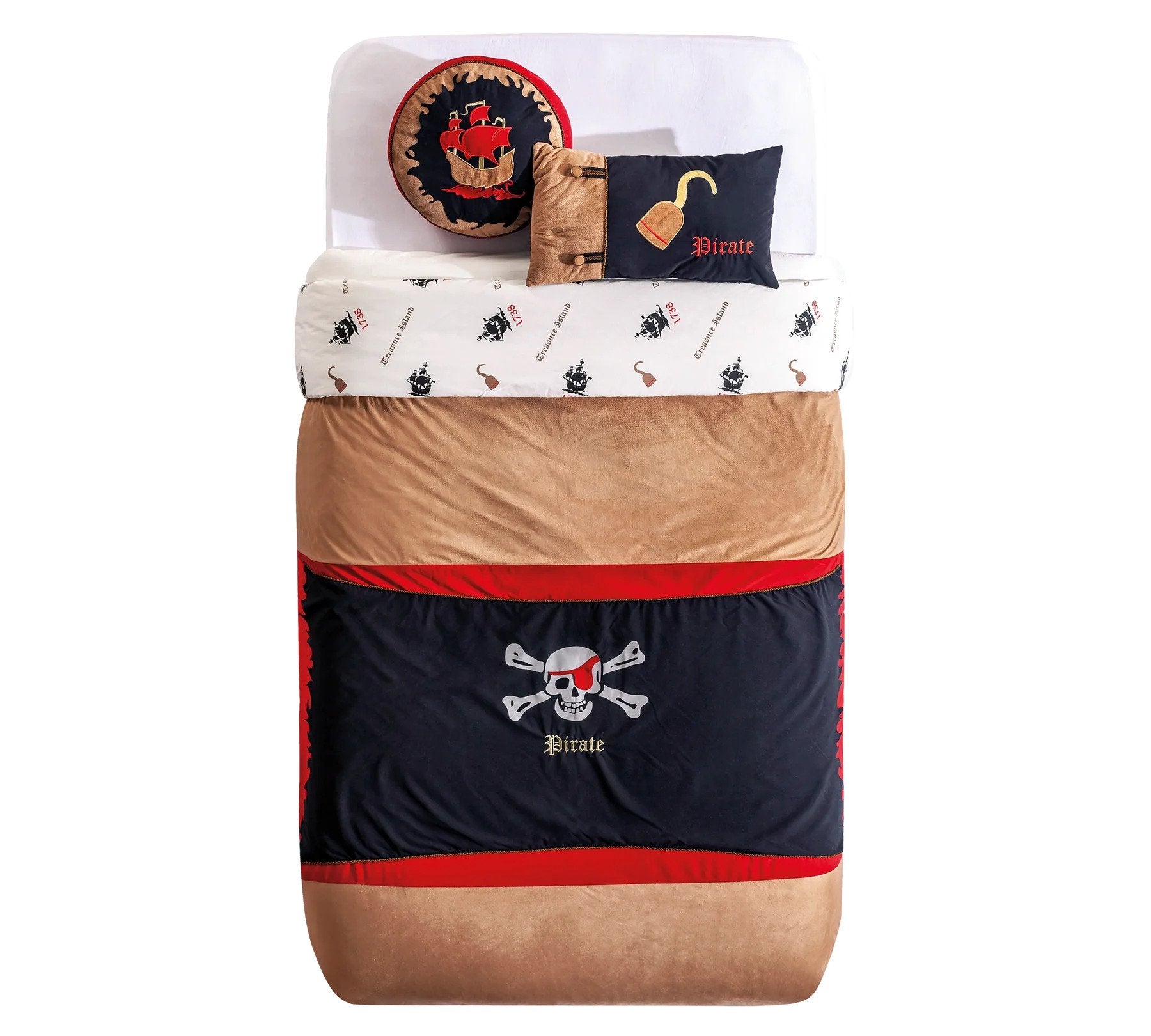 Detský prehoz Black Pirate je ideálnym doplnkom do každej pirátskej izby. Tento štýlový prehoz dodá vašej posteľovej súprave jedinečný námornícky šmrnc. Je vyrobený z kvalitného materiálu, ktorý zaručuje pohodlný spánok Je vhodný na postele s rozmerom 90-100 cm, čo z neho robí skvelú voľbu pre väčšinu detských postelí.
