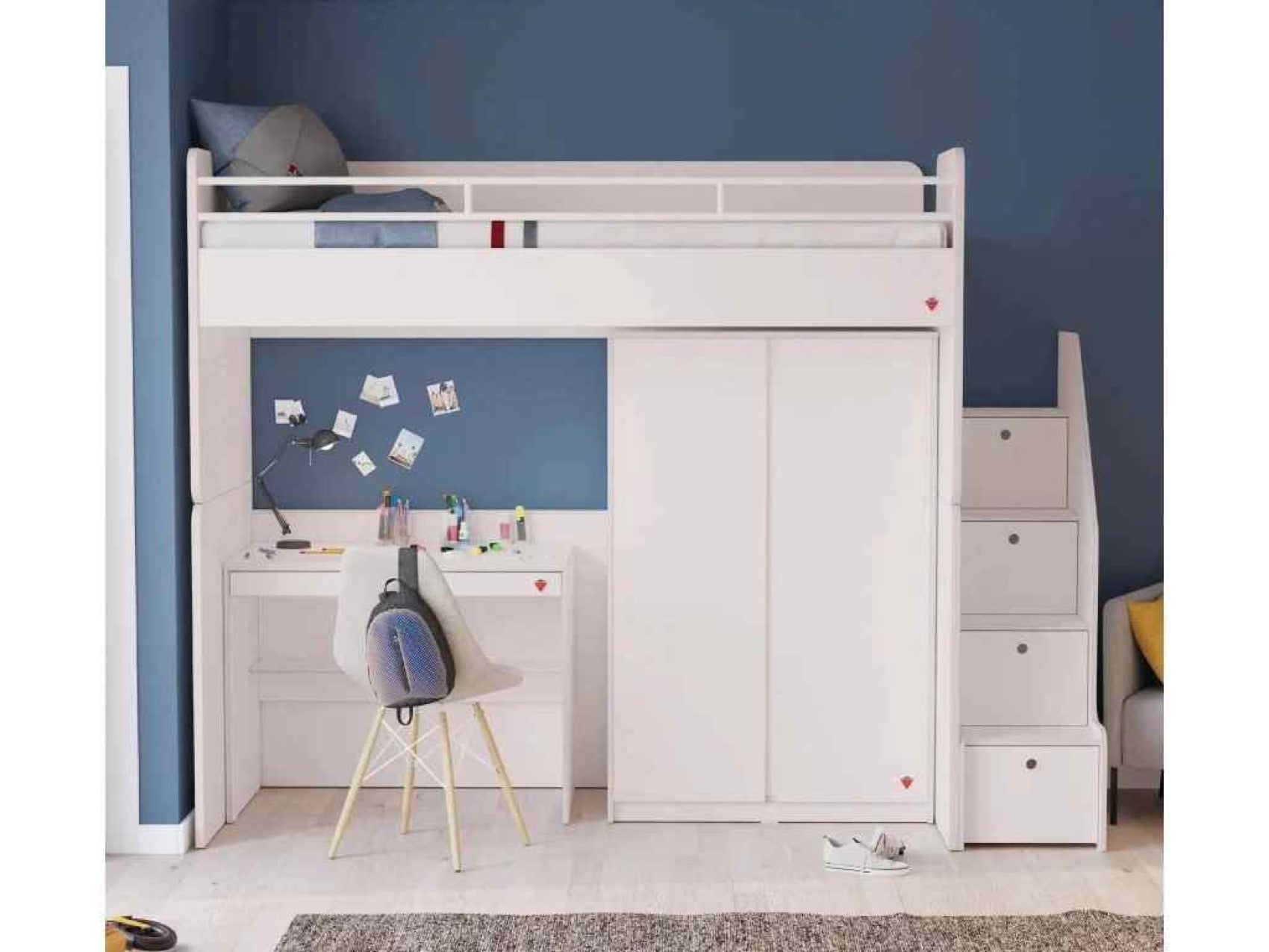 Študentská vyvýšená posteľ STUDIO VARIA WHITE je ideálnym riešením do detskej izby, kde ušetrí množštvo priestoru. Voľný priestor pod posteľou je ideálny na vytvorenie hracieho kútika, pracovného stola alebo úložného priestoru - podľa potrieb a fantázie dieťaťa aj rodičov. Pre ešte lepšie využitie priestoru odporúčame doplniť izbu o ďalšie lôžko, skriňu či písací stôl z rovnakej série.