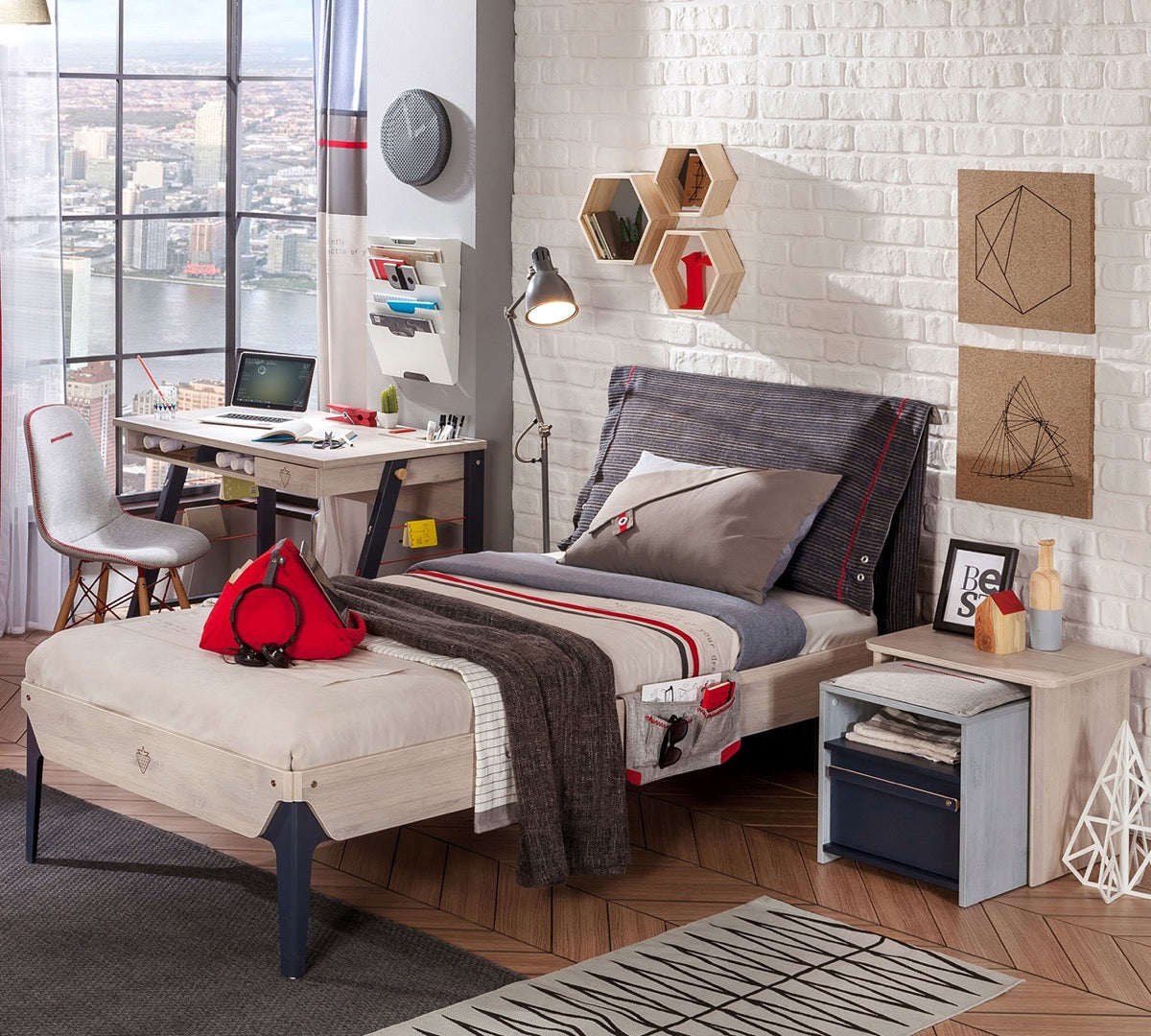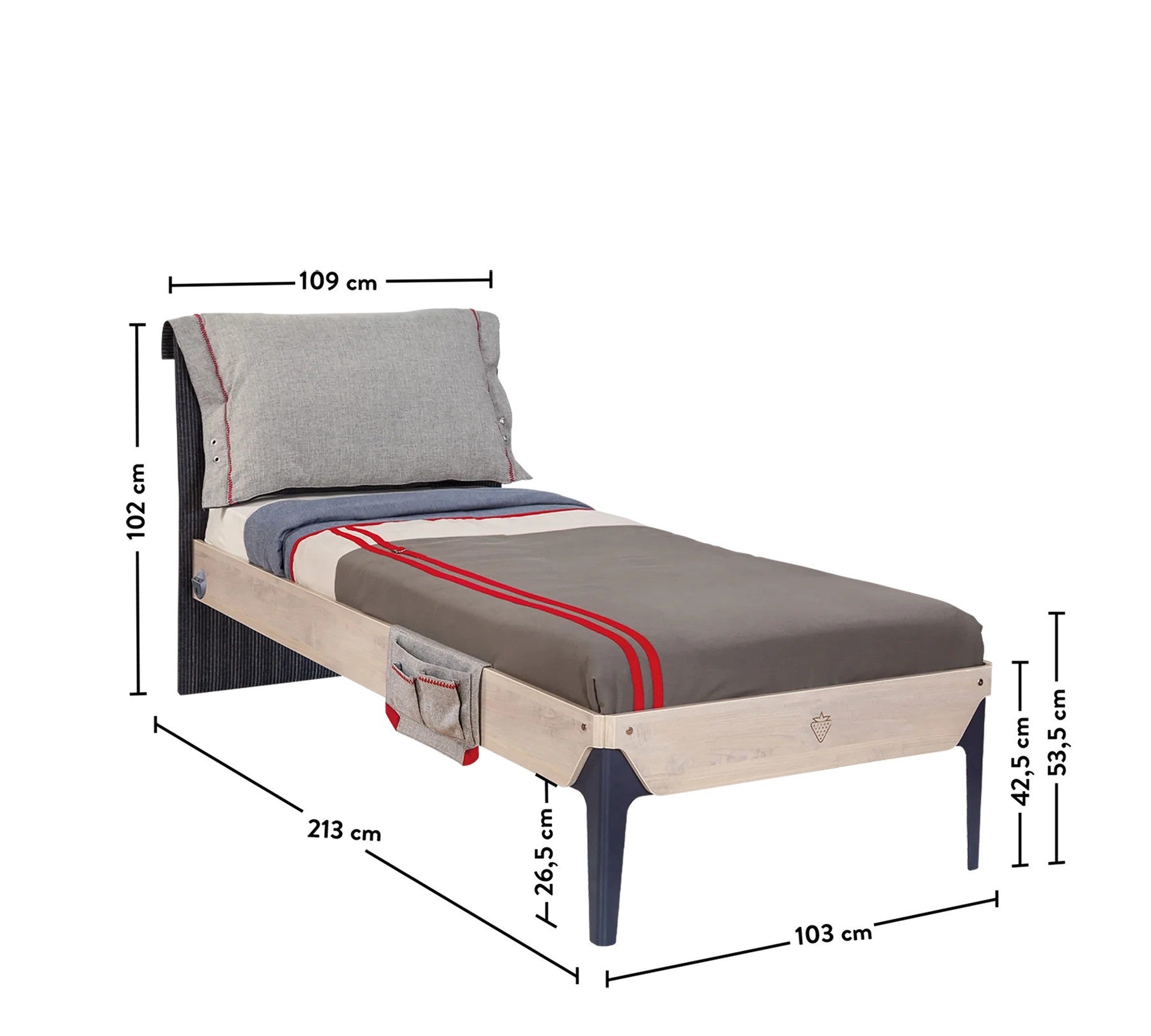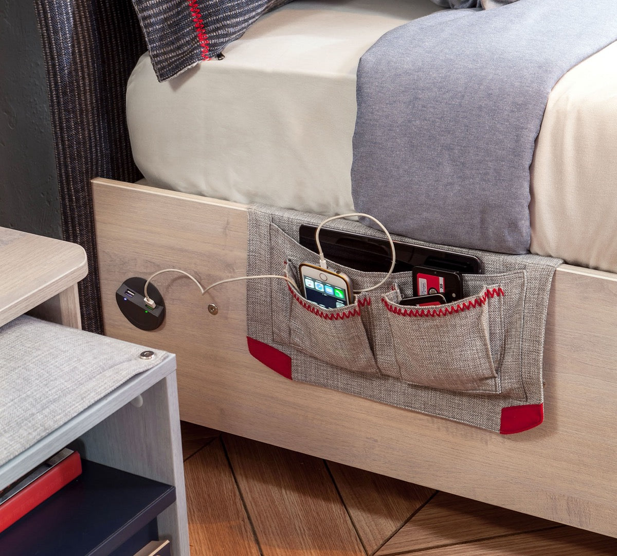 Študentská posteľ TRIO svojím vzhľadom zapadne do každého interiéru. Svojou praktickosťou zaujme aj tých najnáročnejších. Na čele postele je suchým zipsom pripevnený obojstranný vankúš (svetlejšia a tmavšia strana) pre ešte väčšie pohodlie. Posteľ obsahuje 2 USB vstupy pre nabíjanie Vašich smart zariadení. Okrem toho je na boku postele zavesené aj vrecko na odkladanie drobností. Stabilné kovové nohy dodávajú posteli eleganciu. Ku posteli je možné dokúpiť si prístelku, ktorá môže slúžiť ako úložný priestor alebo ďalšie lôžko na prespanie. Posteľ je dodávaná s kvalitným doskovým rámom. Matrac a textilné doplnky však v cene nie sú. Je potrebné si ich doobjednať zvlášť na základe svojich vlastných preferencií. Nosnosť postele je 130 kg.
