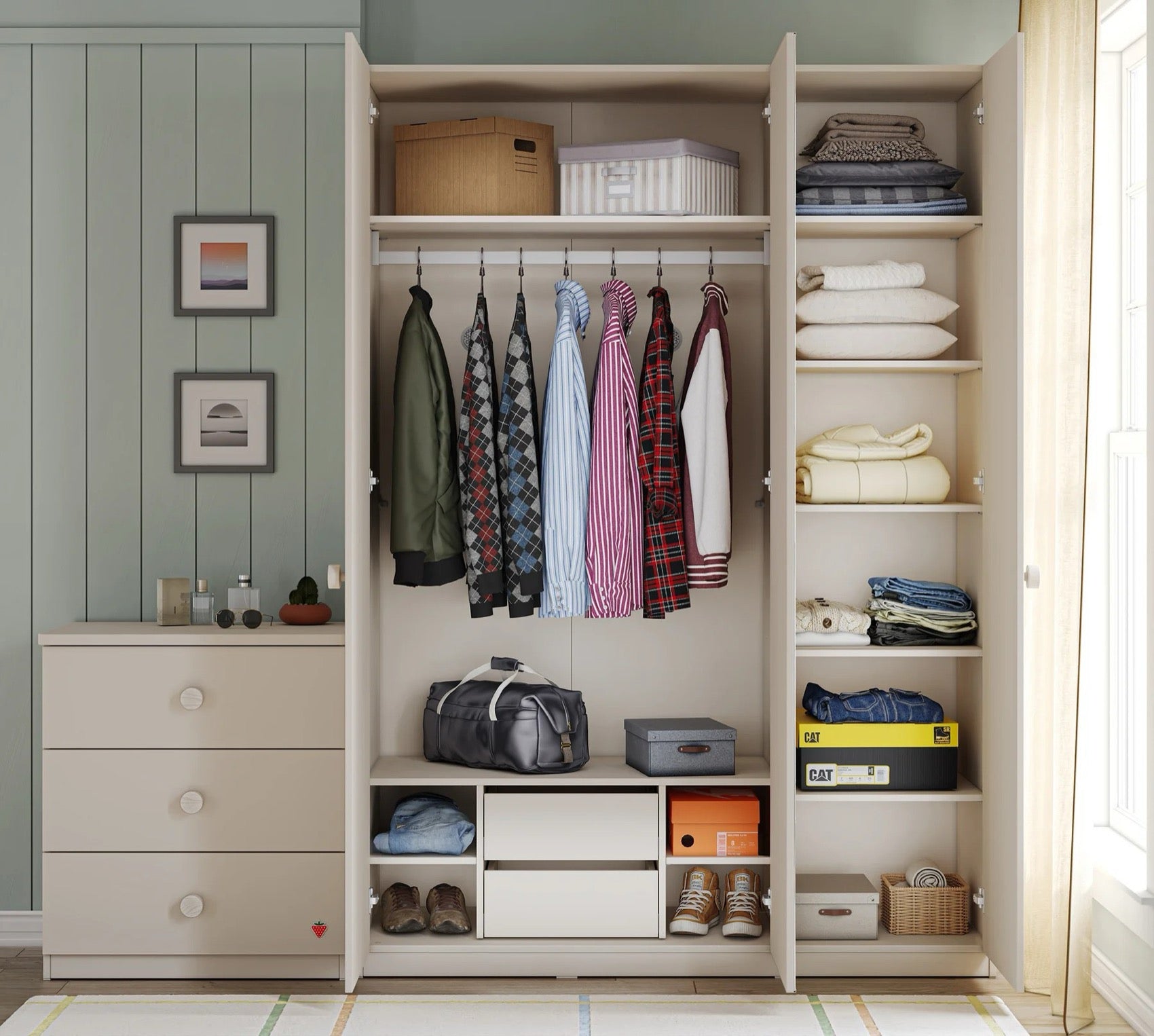 Študentská skriňa 3-dverová VARIA ponúka dostatok úložného priestoru pre organizáciu a usporiadanie Vašich vecí či už v spálni, študentskej izbe alebo obývacej miestnosti. V strednej časti je skriňa elegantne zdobená čírym zrkadlom, čím pridáva do miestnosti prvok luxusu a štýlu. Skriňa obsahuje jednu tyč na zavesenie vecí, množstvo políc rôznych veľkostí a dve zásuvky, ktoré sa nachádzajú vo vnútri skrine. Nosnosť jednej zásuvky je 30 kg. Pomalé a tiché zatváranie zásuviek zaručujú tlmiče. Dvere skrine majú pneumatické brzdy pre bezpečné a tiché zatváranie. Samozrejmosťou sú aj vetračné kapsuly v skrini, ktoré zabezpečujú prietok vzduchu a vetranie. V balení nájdete mechanizmus na zachytenie do steny na eliminovanie jej prevrhnutia. Vďaka modernému a štýlovému dizajnu je táto skriňa unikátnym kúskom, ktorý skvele zapadne do každej izby.