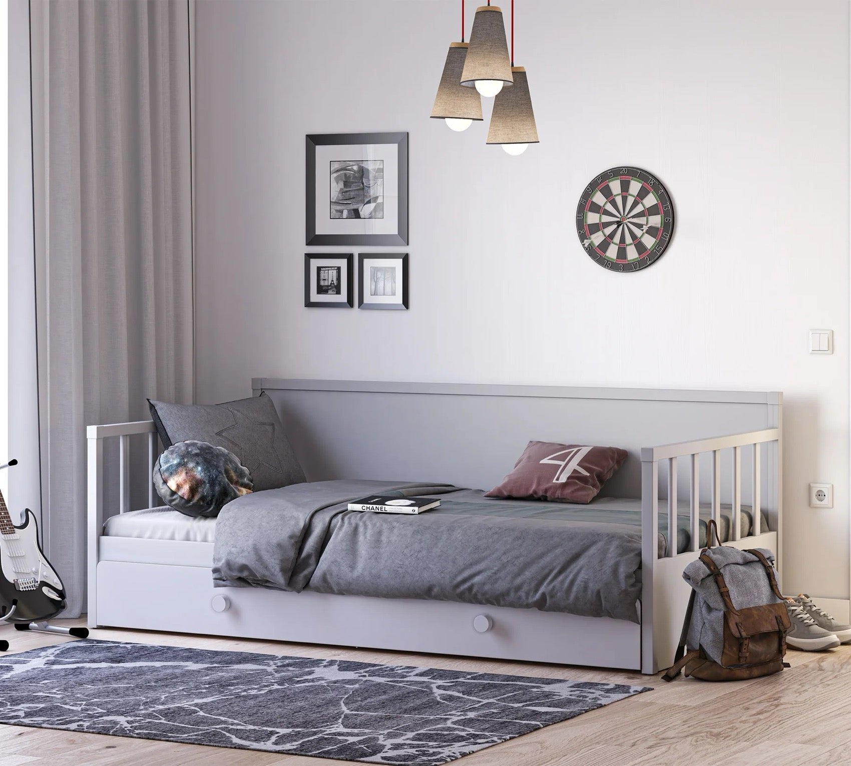 Detská prístelka s úchytkami v sivej farbe (90x190 cm) predstavuje ideálne riešenie pre efektívne a pohodlné spanie vašich detí. Prístelka zaujme moderným dizajnom a prirodzenými odtieňmi, ktoré sa ľahko kombinujú s ostatným nábytkom v detskej izbe. Vďaka svojej multifunkčnosti môže poslúžiť ako prístelka, ale aj ako priestranný úložný priestor. Je vyrobená z kvalitných materiálov, ktoré zaručujú jej dlhú životnosť. Nosnosť prístelky je až 130 kg. Jej vnútorné rozmery lôžka sú 90x190 cm, pričom je dôležité dodržiavať maximálnu výšku matraca 13 cm pre optimálne používanie. S praktickými kolieskami sa s ňou ľahko manipuluje, čo pridáva na funkčnosti v každej detskej izbe.
