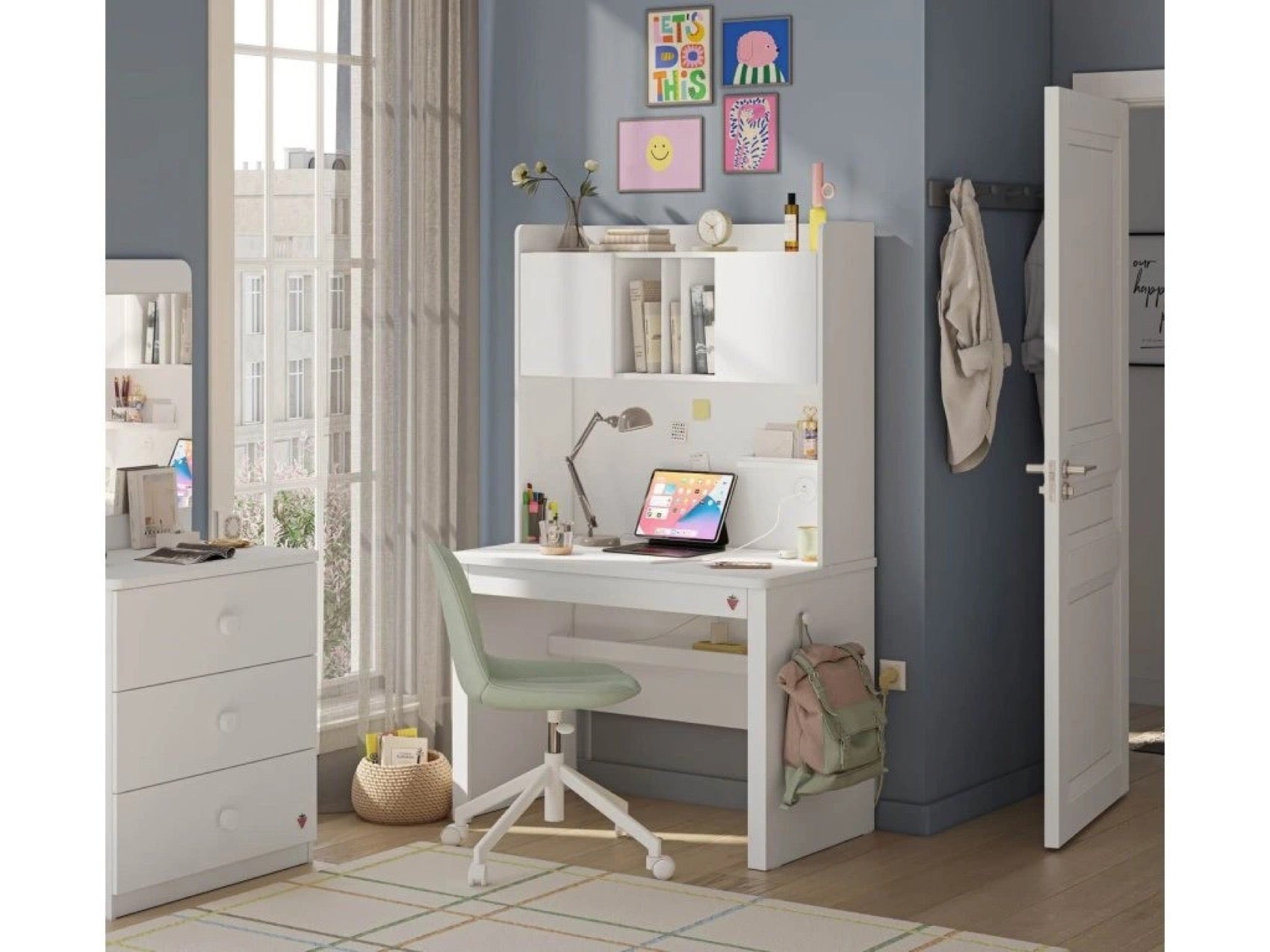 Študentská nadstavba k písaciemu stolu STUDIO VARIA WHITE je ideálnym riešením pre každého študenta, ktorý si chce udržať svoj pracovný priestor uprataný a organizovaný. S množstvom praktických priehradiek ponúka dostatok priestoru na uskladnenie kníh, zošitov a osobných predmetov, čím zaisťuje vždy čistý a prehľadný stôl. Nadstavba poskytuje 2x USB vstup, ktorý umožňuje jednoduché a pohodlné nabíjanie elektronických zariadení, čo zvyšuje efektivitu pri štúdiu a práci. Táto nadstavba je kompatibilná len s písacím stolom STUDIO VARIA WHITE (20.94.1101.00).